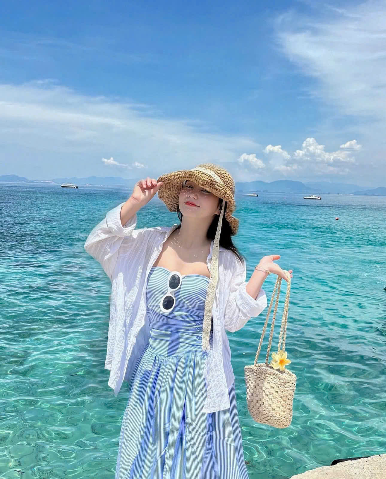 - Kem chống nắng, mũ rộng vành, kính râm: Để bảo vệ da và mắt khỏi tác động của ánh nắng mặt trời gay gắt ở biển. Nên chọn loại kem chống nắng có chỉ số SPF cao (tối thiểu SPF 50+) và chống nước để hiệu quả lâu dài khi tiếp xúc với nước.